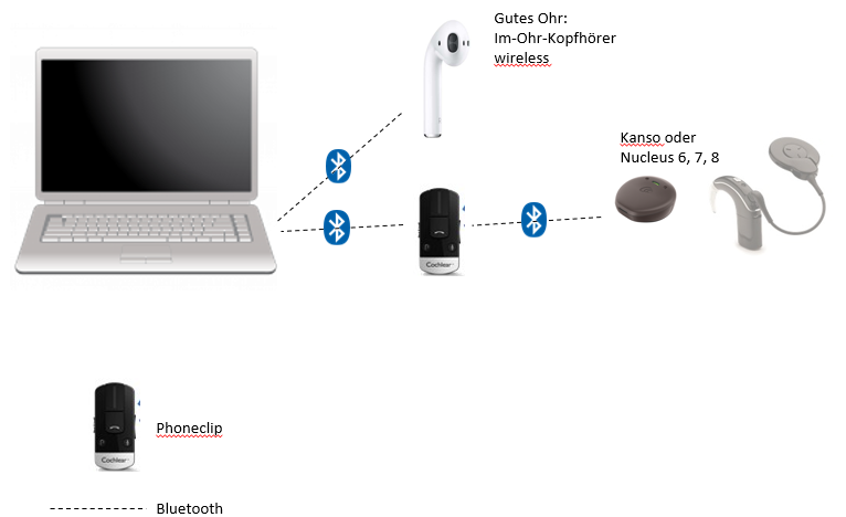 Inhalt: Technische Lösung für Stereohören bei Videokonferenzen mit Cochlear bei einseitiger Ertaubung und Bluetooth Verbindung